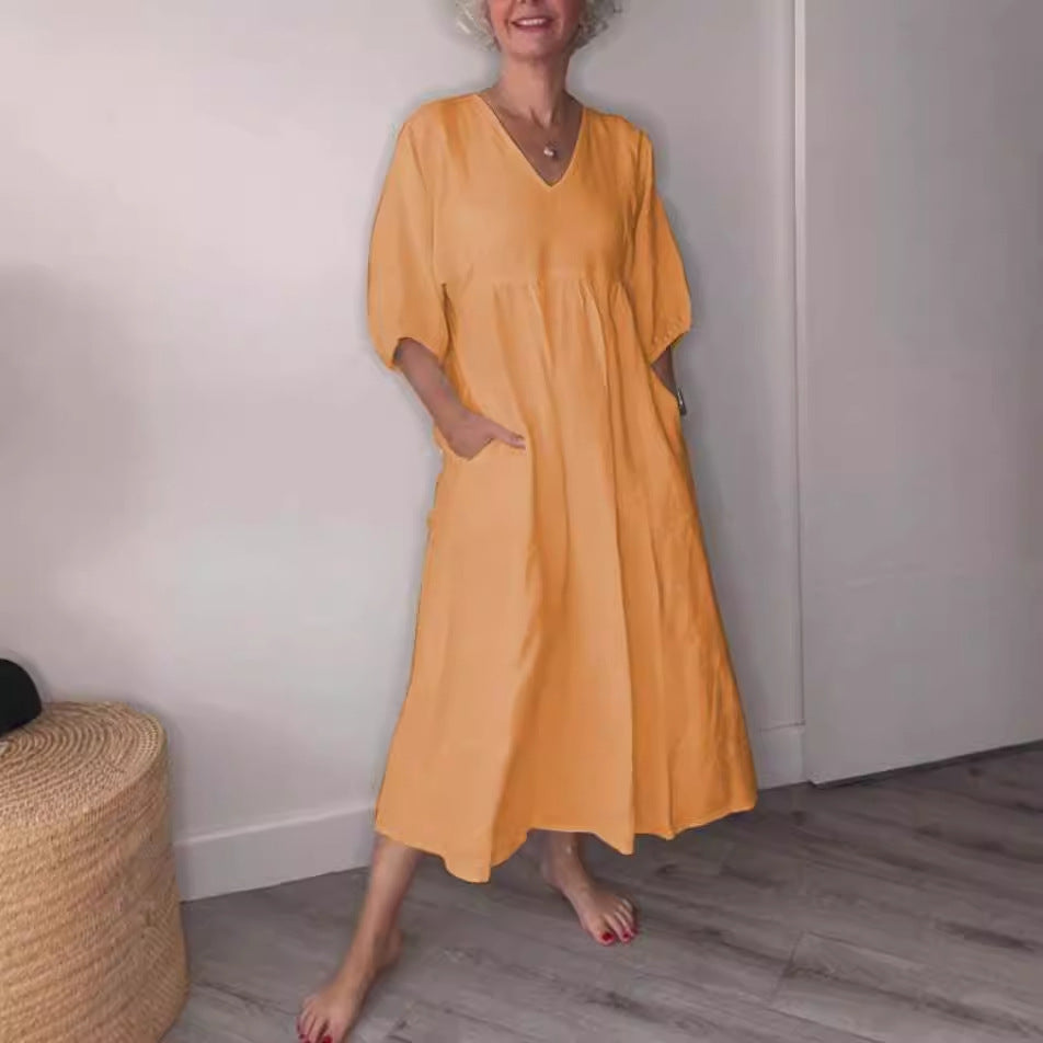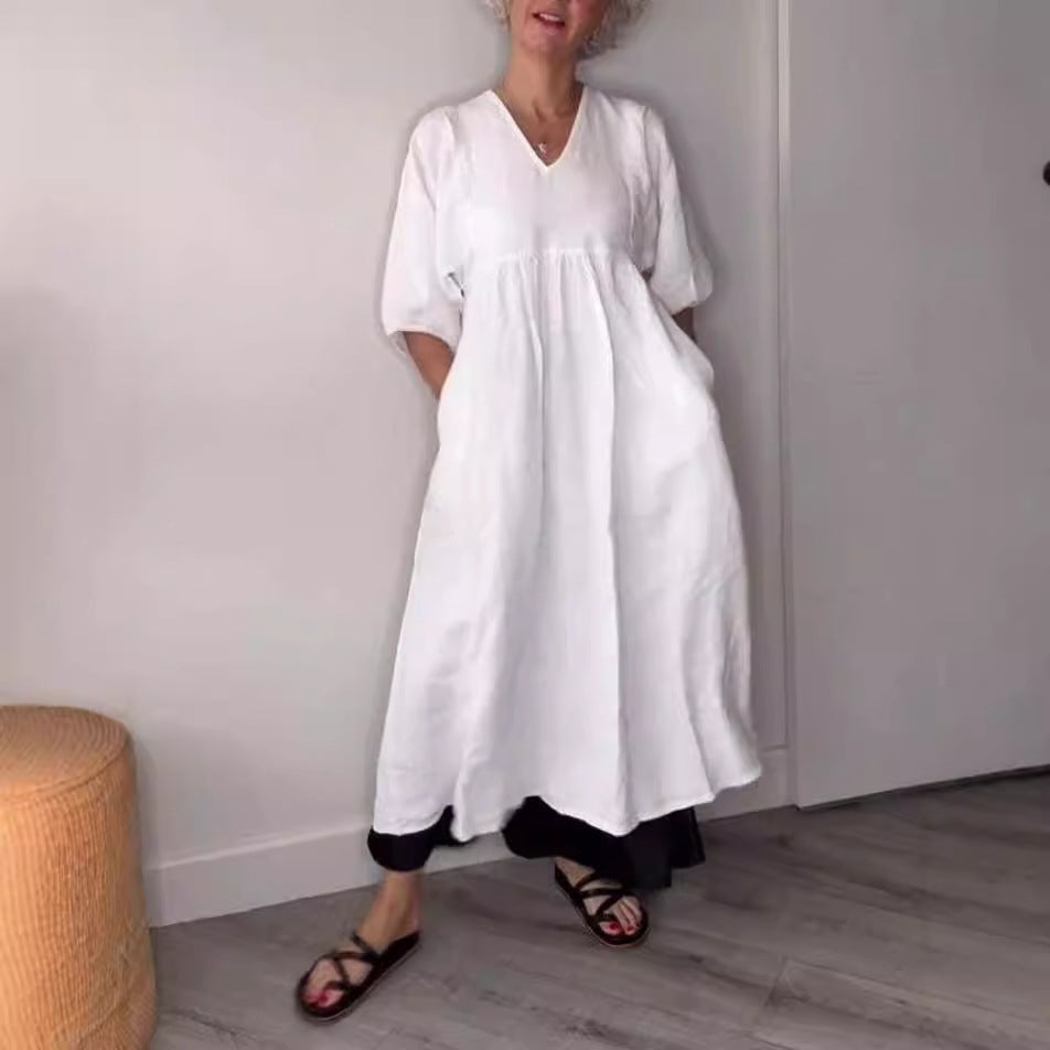 Eira – lång klänning med v-ringning